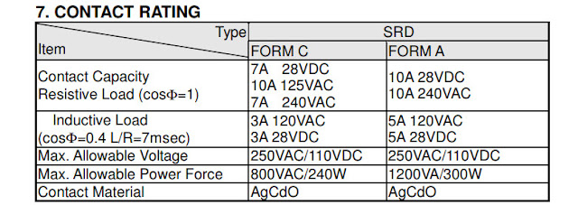 Посмотрим, какой ток выдерживает это реле. В даташите есть таблица CONTACT RATING.