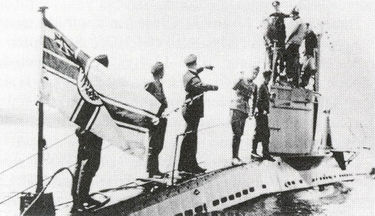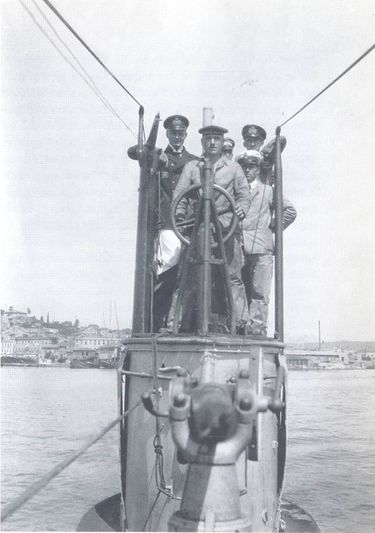 UB 14 в Поле, лодку готовят к переходу в Константинополь. На мостике командир — фон Хеймбург.